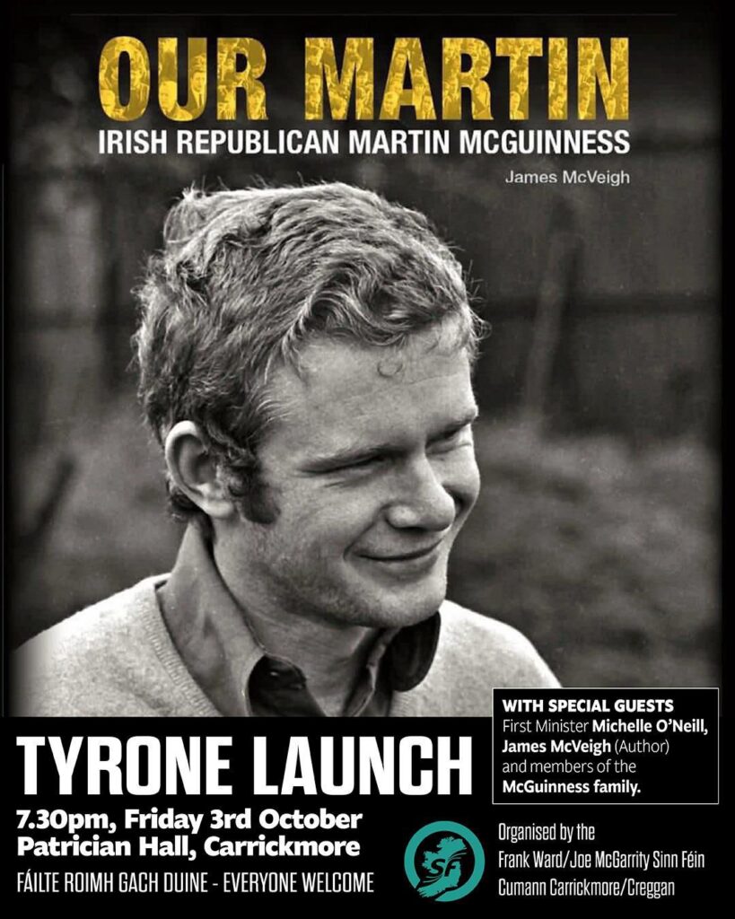 On Fri 3rd October, the local Sinn Féín cumann host the Tyrone launch of ‘Our Martin’, a book by James McVeigh.